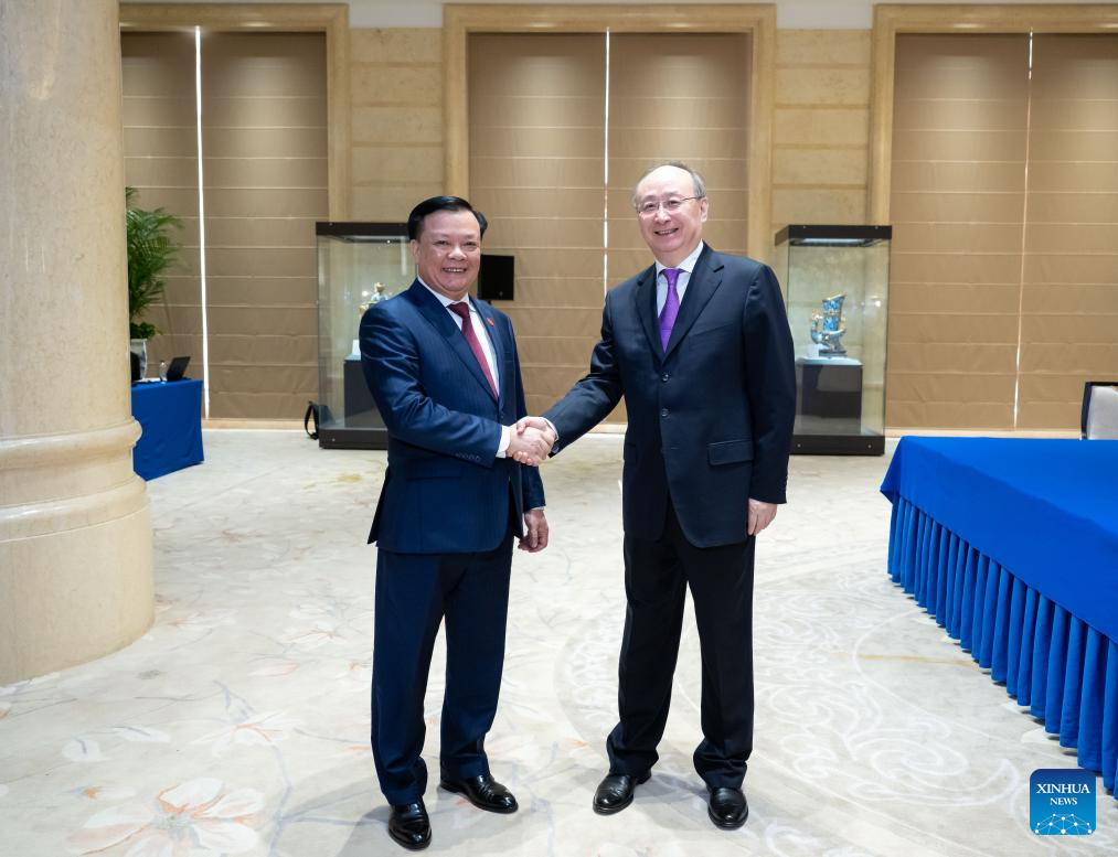It is hoped that the two sides will take this meeting as an opportunity to work together in implementing the important consensus reached by the general secretaries of the two parties, deepen exchanges and cooperation between the two capital cities, and promote the construction of a China-Vietnam community with a shared future, he said.