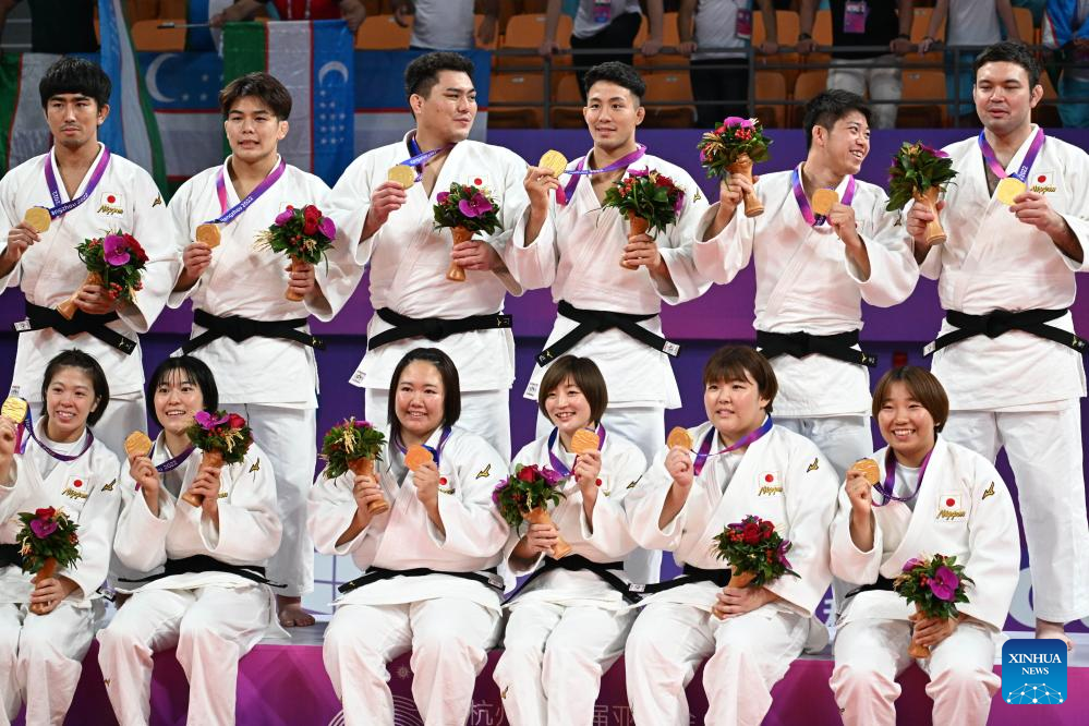 HANGZHOU, Sept. 27 (Xinhua) -- Japan won back-to-back Asian Games gold medals in the mixed team judo event after beating Uzbekistan 4-0 at the Hangzhou Asiad here on Wednesday.