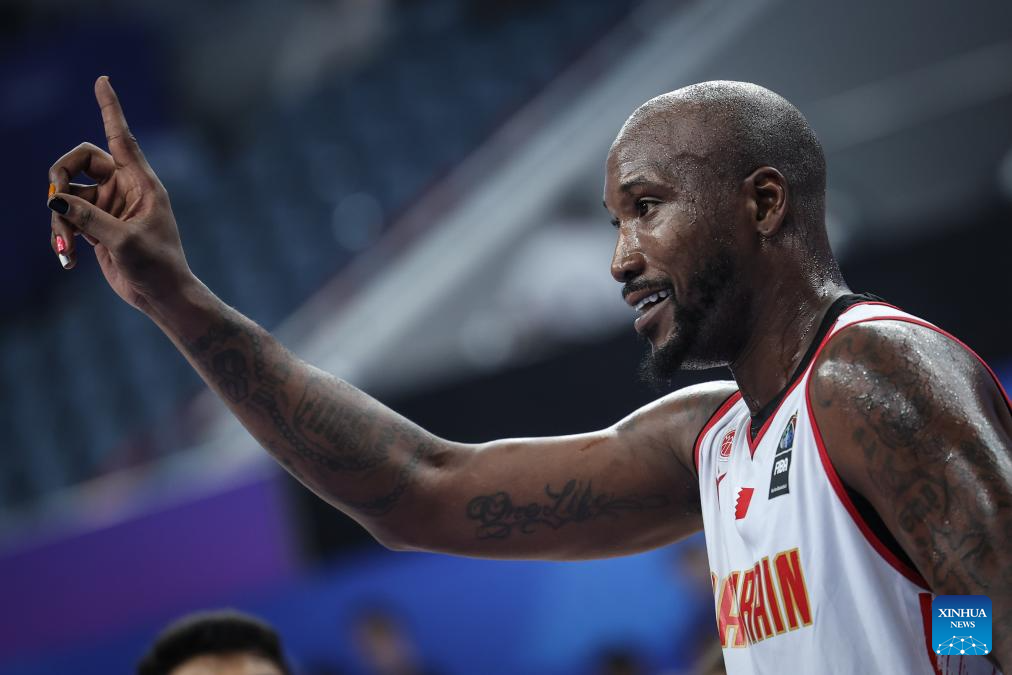 Devon Dwayne Lamont Chism of Bahrain challenges the judge during the Men's Preliminary Round Group C match of Basketball between Jordan and Bahrain at the 19th Asian Games in Hangzhou, east China's Zhejiang Province, Sept. 28, 2023. (Xinhua/Pan Yulong)