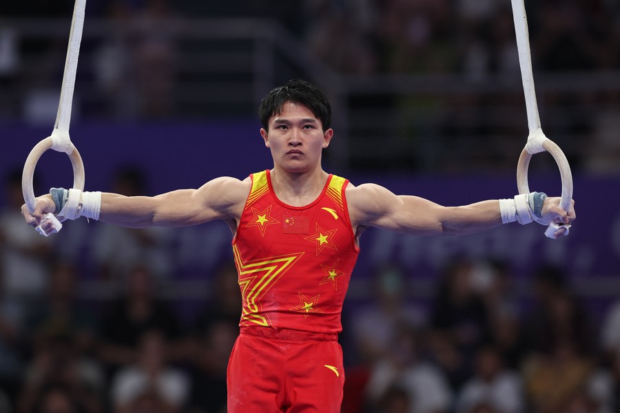 Chinese gymnast Lan Xingyu in action during the men's rings final. (Xinhua/Cheng Tingting)