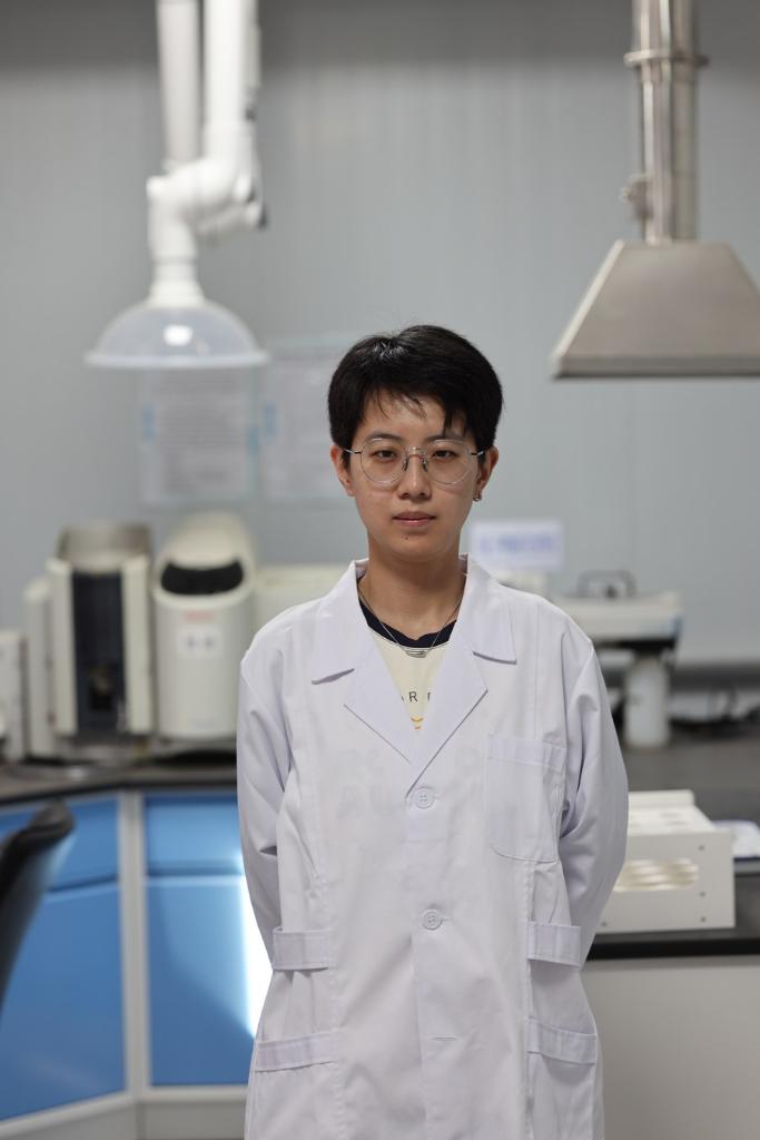 Wu Rong poses for a photo at a laboratory in Bayannur, north China's Inner Mongolia Autonomous Region, Sept. 14, 2023. (Xinhua/Xing Guangli)