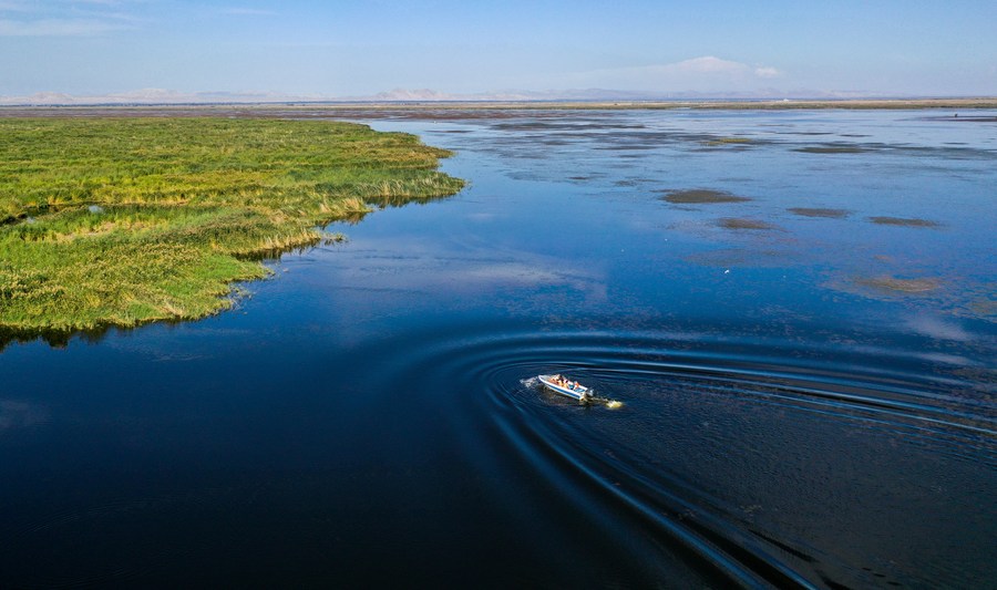 This photo taken on Sept. 15, 2023 shows a scenery of the Ulan Suhai Lake in Bayannur, north China's Inner Mongolia Autonomous Region. (Xinhua/Wang Kaiyan)