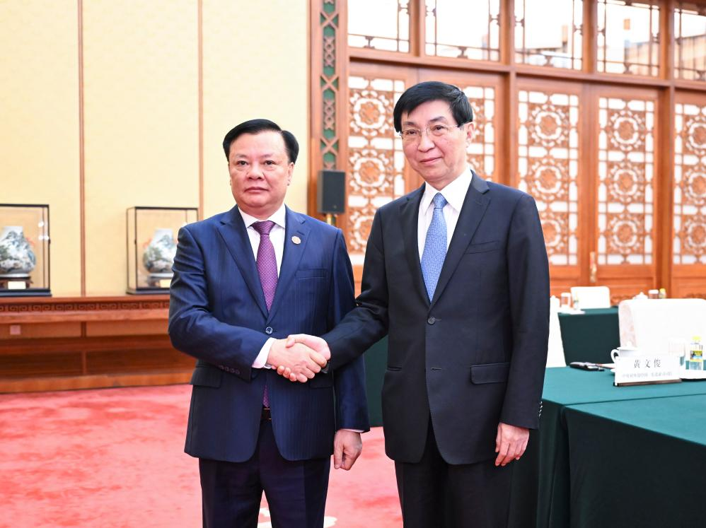 BEIJING, Sept. 28 (Xinhua) -- China's top political advisor Wang Huning met with Dinh Tien Dung, a member of the Politburo of the Communist Party of Vietnam and secretary of the Hanoi Municipal Communist Party of Vietnam Committee in Beijing on Thursday.