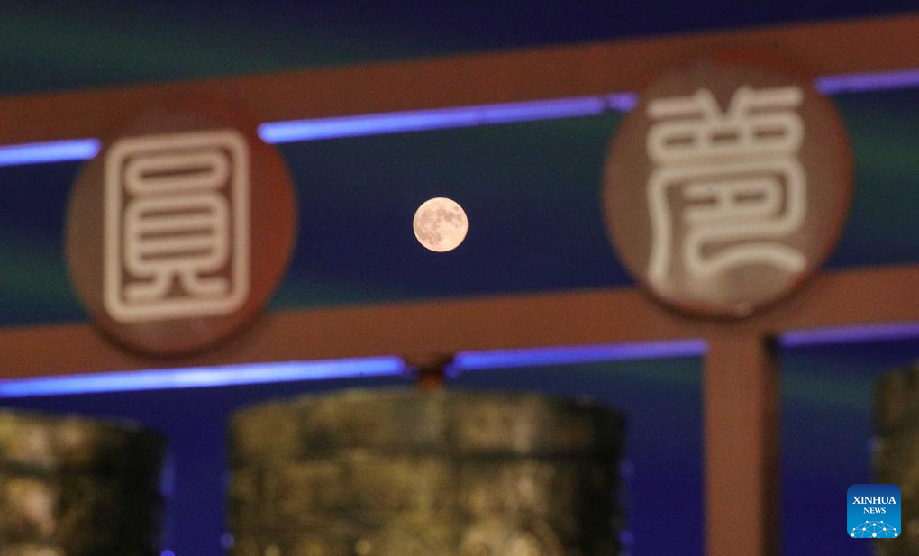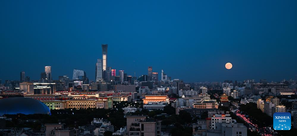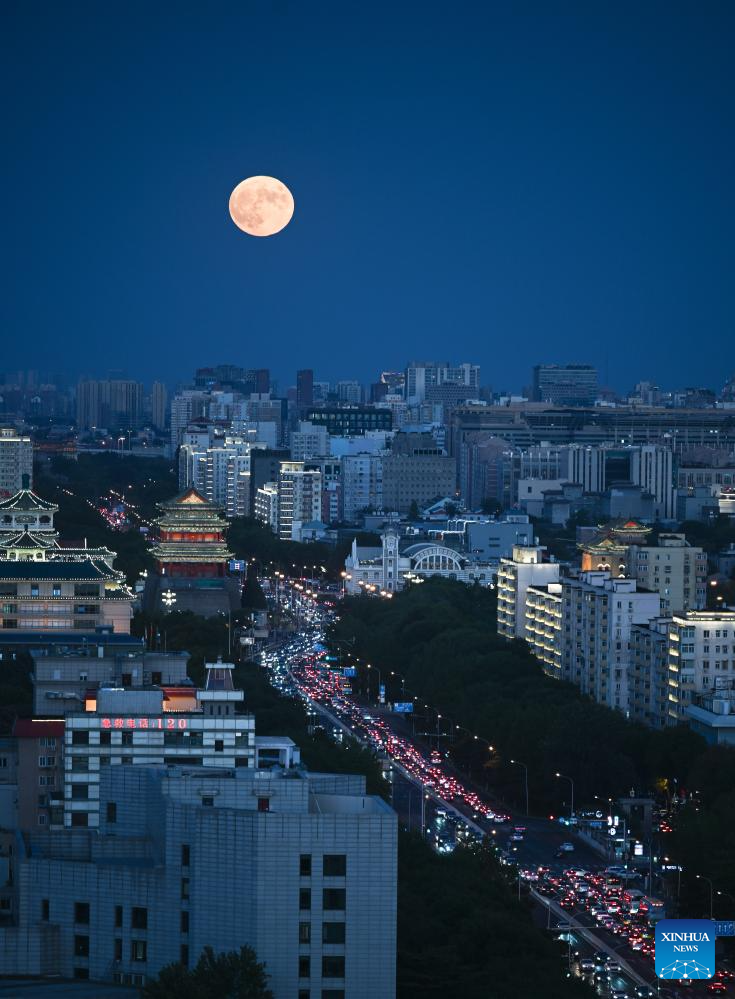 A full moon is seen over Beijing, capital of China, Sept. 29, 2023. Friday marks this year's Mid-Autumn Festival. Chinese people have a tradition to celebrate the festival by admiring the full moon. (Xinhua/Wang Jianhua)