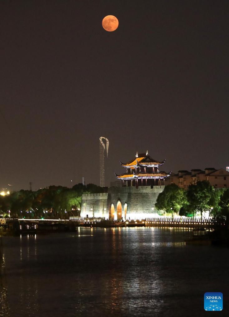 A full moon is seen over Suzhou, east China's Jiangsu Province, Sept. 29, 2023. Friday marks this year's Mid-Autumn Festival. Chinese people have a tradition to celebrate the festival by admiring the full moon. (Photo by Hang Xingwei/Xinhua)