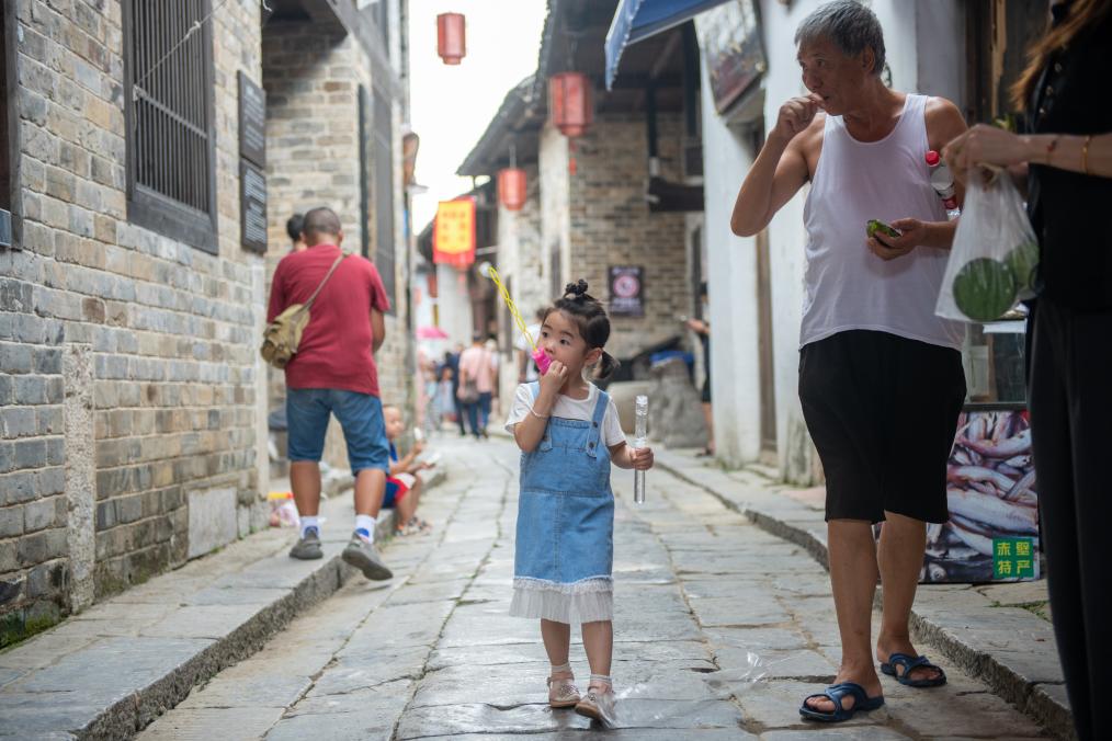Tourists visit an ancient street in Yangloudong of Chibi City, central China's Hubei Province, Sept. 9, 2023. (Photo by Du Zixuan/Xinhua)