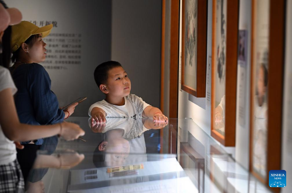 People visit an exhibition at Tianjin Art Museum in Tianjin, north China, Oct. 2, 2023. People across the country participate in cultural activities to enrich their holiday life during the National Day holiday. (Xinhua/Li Ran)