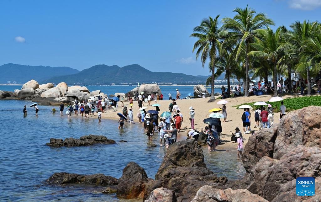 Tourists visit a scenic spot in Sanya, south China's Hainan Province, Oct. 1, 2023. As a popular tourist destination, Sanya is seeing a tourism boom during the National Day holiday. (Xinhua/Guo Cheng)