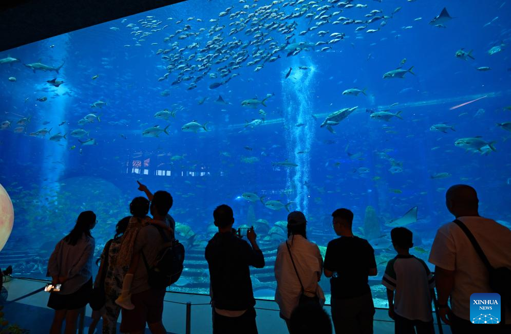 Tourists visit an aquarium in Sanya, south China's Hainan Province, Sept. 30, 2023. As a popular tourist destination, Sanya is seeing a tourism boom during the National Day holiday. (Xinhua/Guo Cheng)