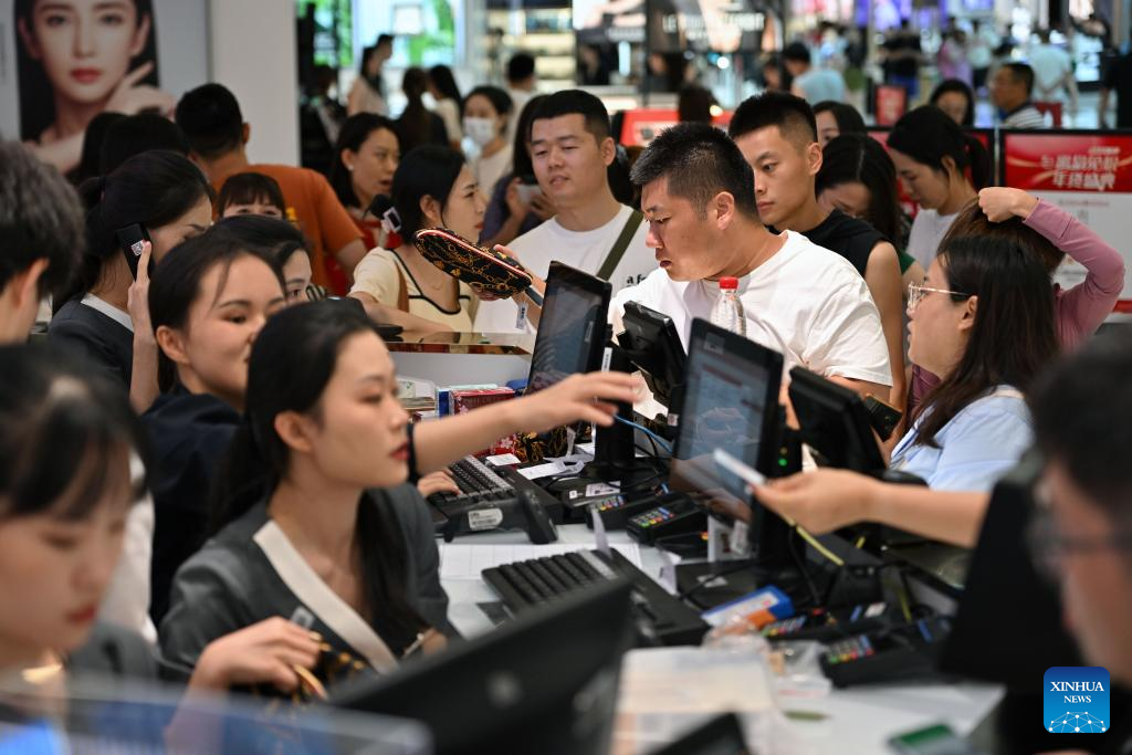 Tourists check out in a duty-free shopping mall in Sanya, south China's Hainan Province, Sept. 30, 2023. As a popular tourist destination, Sanya is seeing a tourism boom during the National Day holiday. (Xinhua/Guo Cheng)