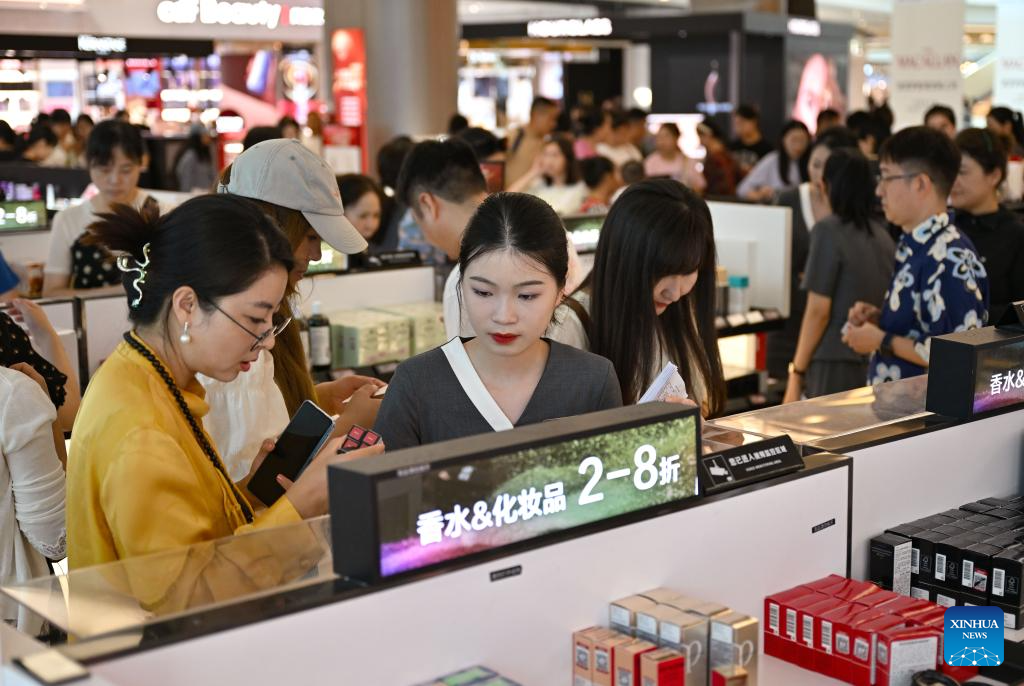 Tourists shop in a duty-free shopping mall in Sanya, south China's Hainan Province, Sept. 30, 2023. As a popular tourist destination, Sanya is seeing a tourism boom during the National Day holiday. (Xinhua/Guo Cheng)