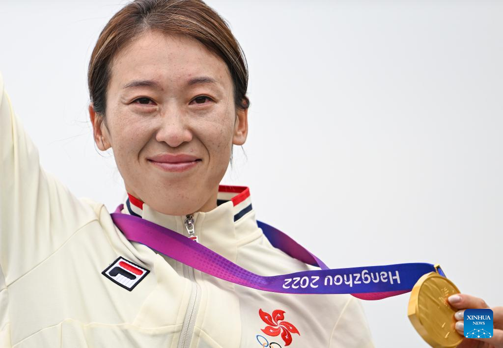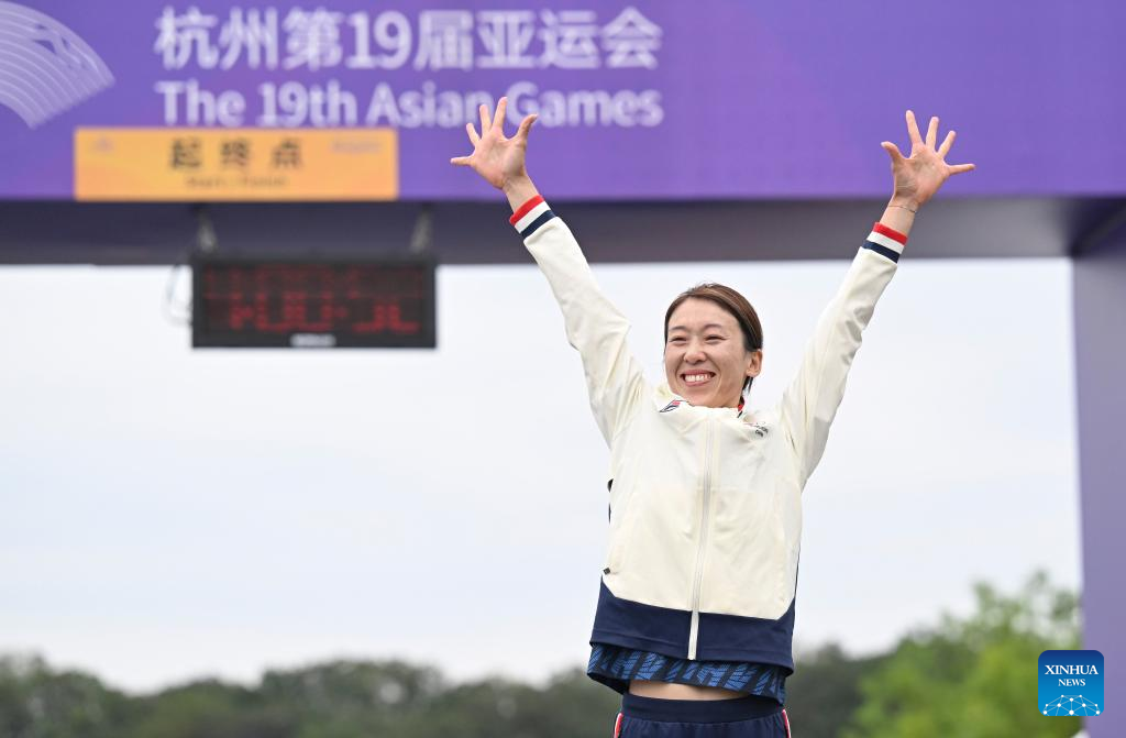 HANGZHOU, Oct. 4 (Xinhua) -- Yang Qianyu from Hong Kong, China clinched the gold medal in the women's road race at the Hangzhou Asian Games on Wednesday.