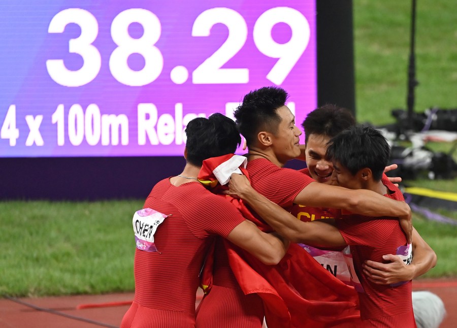 Chinese sprinters swept four gold medals in the 100m individual and relay events. "The gold medal is the best gift for our country," said Xie Zhenye, who triumphed in the men's 100m race in 9.97 seconds and followed with a victory in relay with Chen Guanfeng, Yan Haibin and Chen Jiapeng.