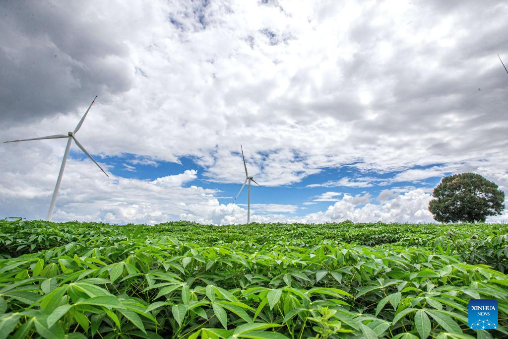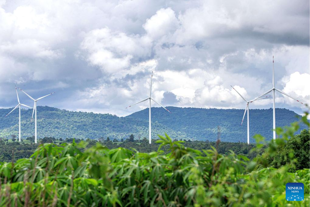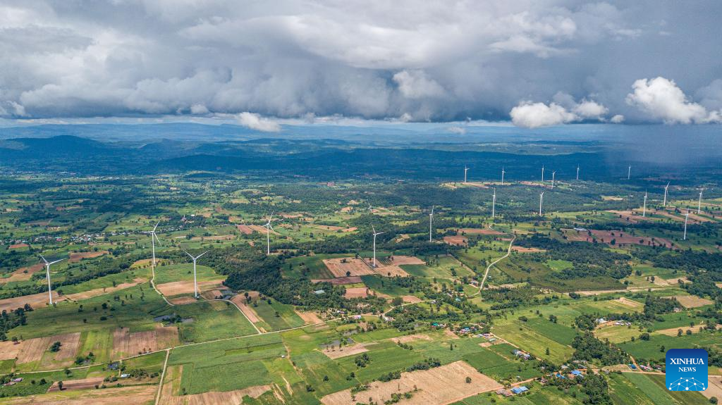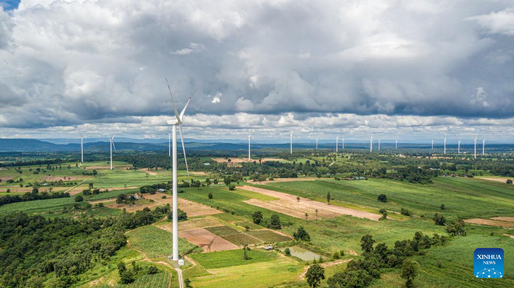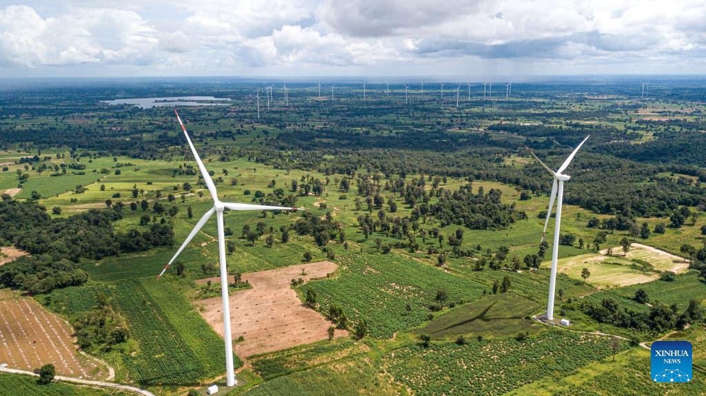 This photo taken on Oct. 5, 2023 shows China's Goldwind wind turbines in Chaiyaphum, Thailand. The Chaiyaphum wind farm hosts 32 of China's Goldwind wind turbines with a total capacity of 80 MW and is operated by EGCO, a major energy producer affiliated to the largest state utility Electricity Generating Authority of Thailand. (Xinhua/Wang Teng)