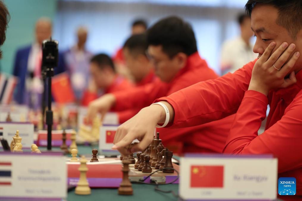 Team China compete against Team Thailand during the Men's Team round 7 of Chess at the 19th Asian Games in Hangzhou, east China's Zhejiang Province, Oct. 5, 2023. (Xinhua/Gong Bing)