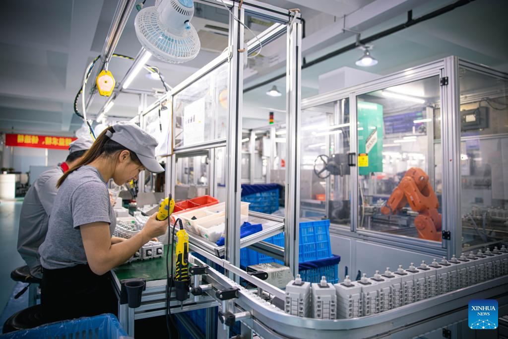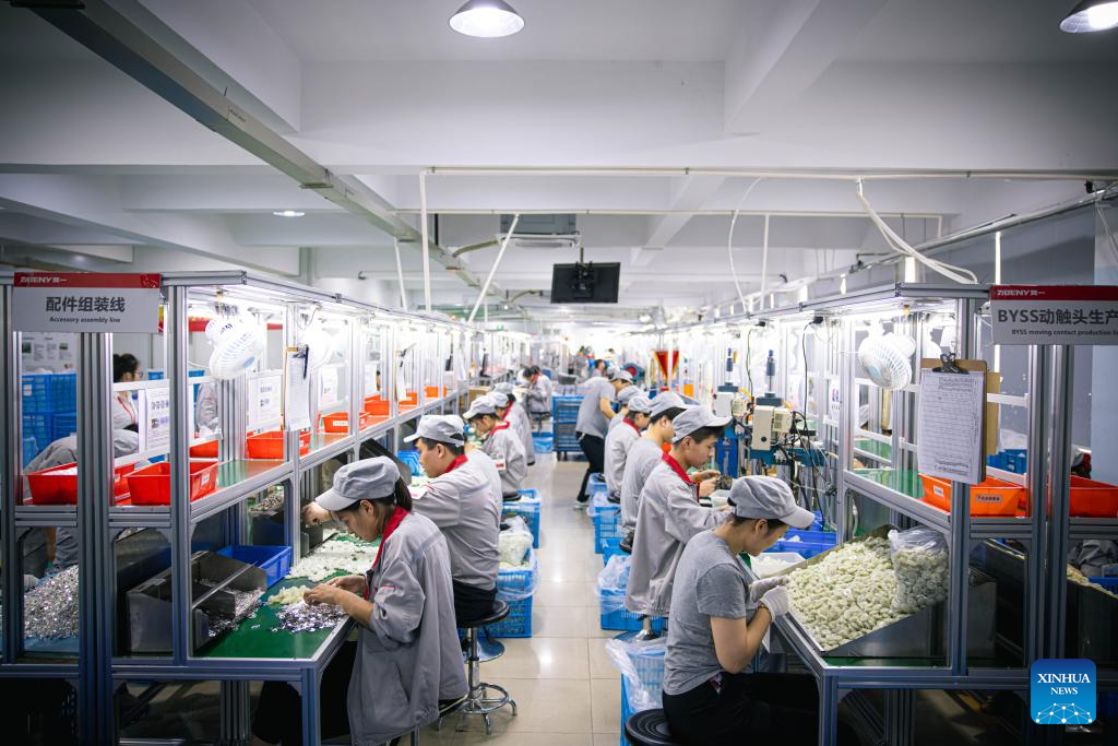 Staff members assemble inverter accessories at the workshop of Beny New Energy Co., Ltd. in Wenzhou, east China's Zhejiang Province, April 19, 2023. Dirk Heil, a resident living in the small town of Schwarzenbek in Schleswig-Holstein, Germany, has been using solar-powered equipment made by Chinese companies in recent months. Thanks to the Belt and Road Initiative, these high-quality and fair-priced products from China have entered German households by sea or by taking China-Europe freight trains.