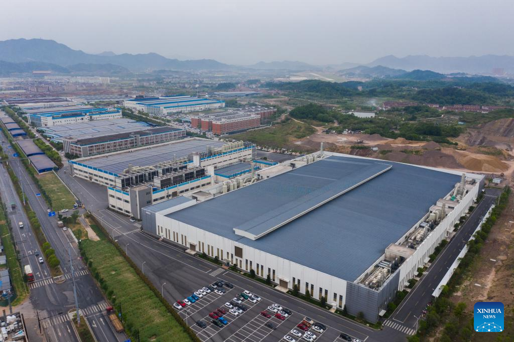 This aerial photo taken on April 18, 2023 shows the exterior view of the workshop of Hengdian Group DMEGC Magnetics Co., Ltd. in Dongyang City, east China's Zhejiang Province. Dirk Heil, a resident living in the small town of Schwarzenbek in Schleswig-Holstein, Germany, has been using solar-powered equipment made by Chinese companies in recent months. Thanks to the Belt and Road Initiative, these high-quality and fair-priced products from China have entered German households by sea or by taking China-Europe freight trains.