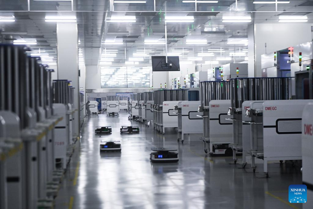 This photo taken on April 18, 2023 shows the interior view of the workshop of Hengdian Group DMEGC Magnetics Co., Ltd. in Dongyang City, east China's Zhejiang Province. Dirk Heil, a resident living in the small town of Schwarzenbek in Schleswig-Holstein, Germany, has been using solar-powered equipment made by Chinese companies in recent months. Thanks to the Belt and Road Initiative, these high-quality and fair-priced products from China have entered German households by sea or by taking China-Europe freight trains.