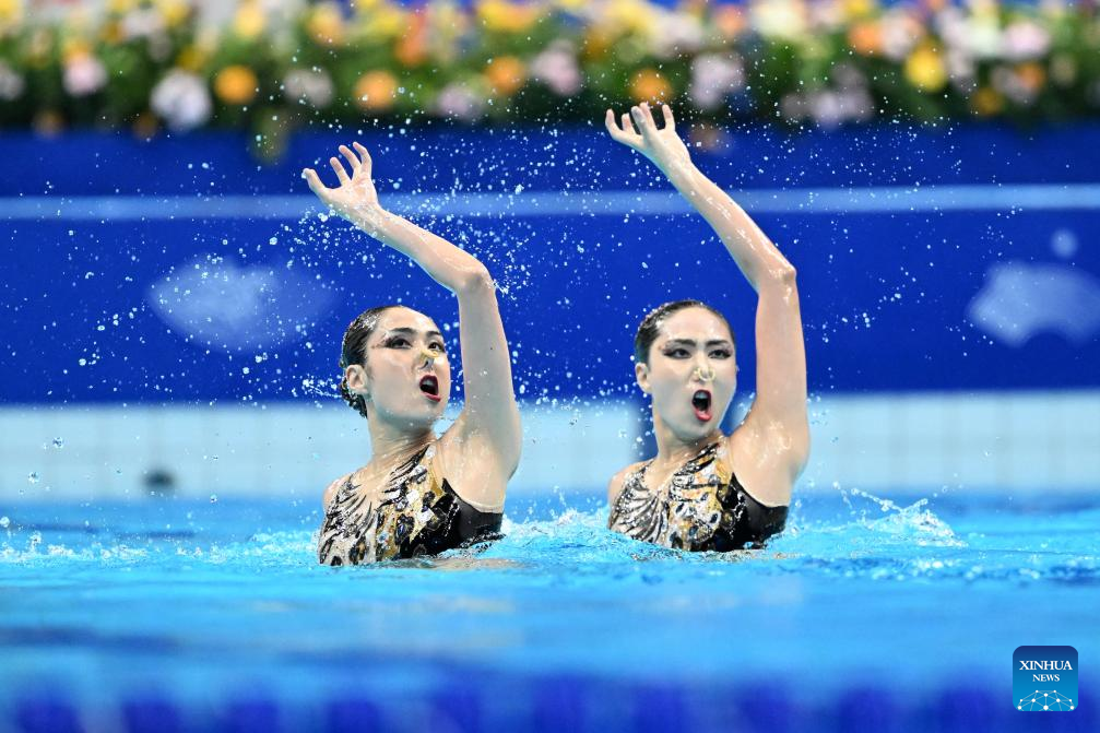 Japan swimmers Mashiro Yasunaga and Moe Higa ranked second in free routine with 235.6855, earning the silver with a total of 489.4288. Kazakhstan's Arina Pushkina and Yasmin Tukakova took the bronze with a total of 418.6987 after ranking third in free routine with 200.5354.