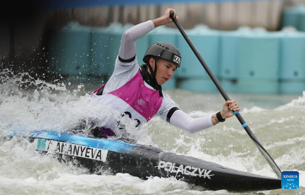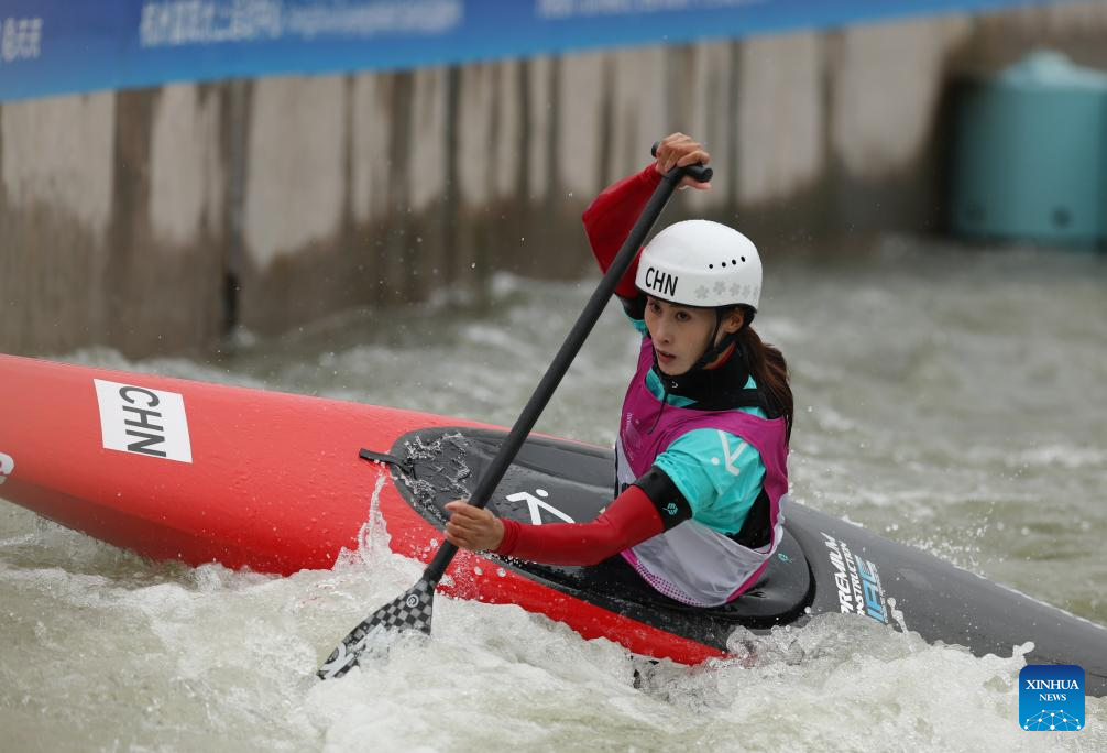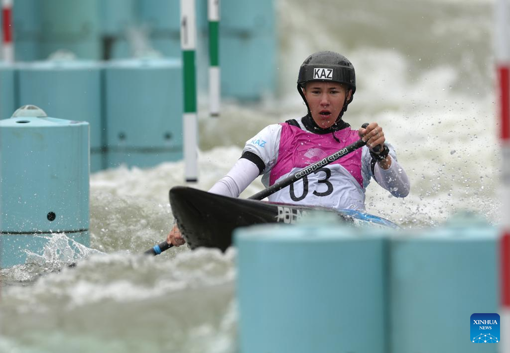 Anastassiya Ananyeva of Kazakhstan competes during the Women's Canoe Final of Canoe Slalom at the 19th Asian Games in Hangzhou, east China's Zhejiang Province, Oct. 7, 2023. (Xinhua/Du Xiaoyi)