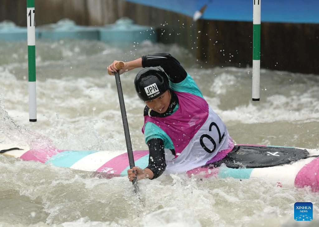 Okazaki Haruka of Japan competes during the Women's Canoe Final of Canoe Slalom at the 19th Asian Games in Hangzhou, east China's Zhejiang Province, Oct. 7, 2023. (Xinhua/Du Xiaoyi)