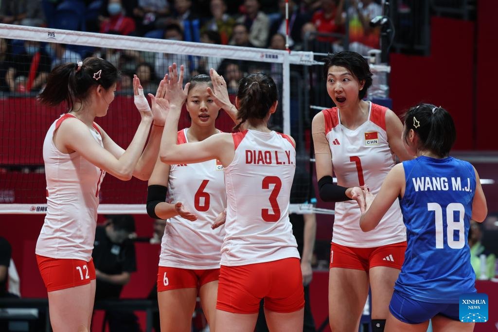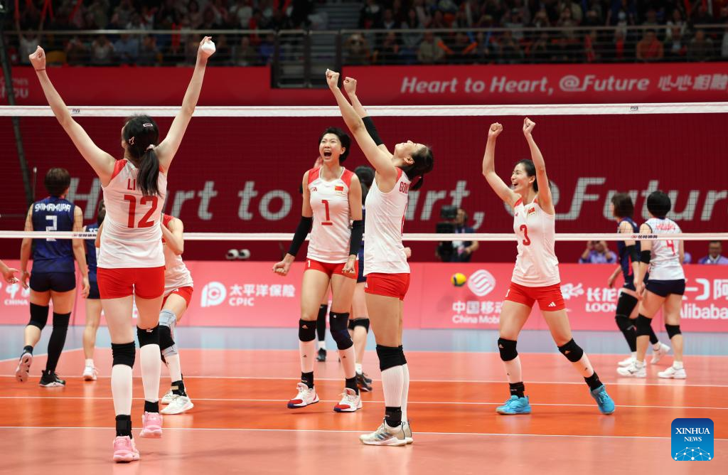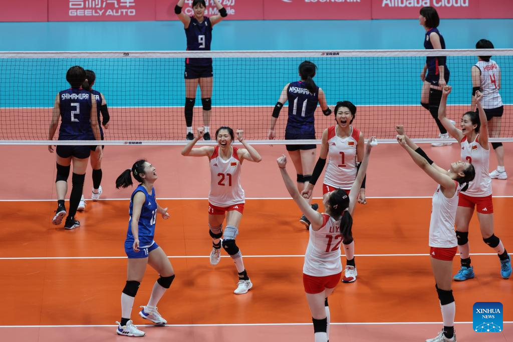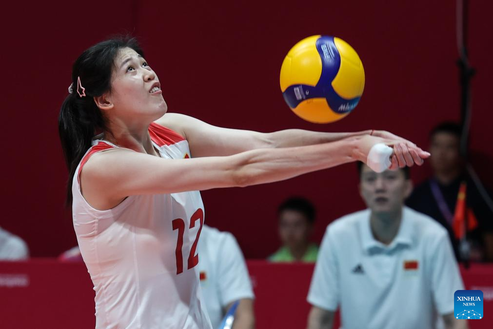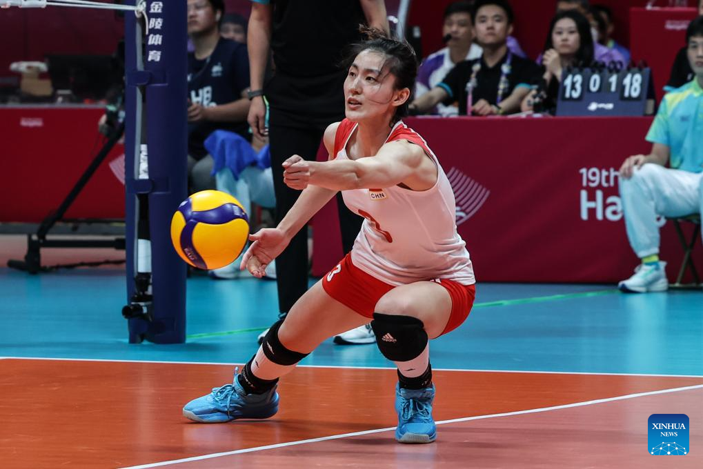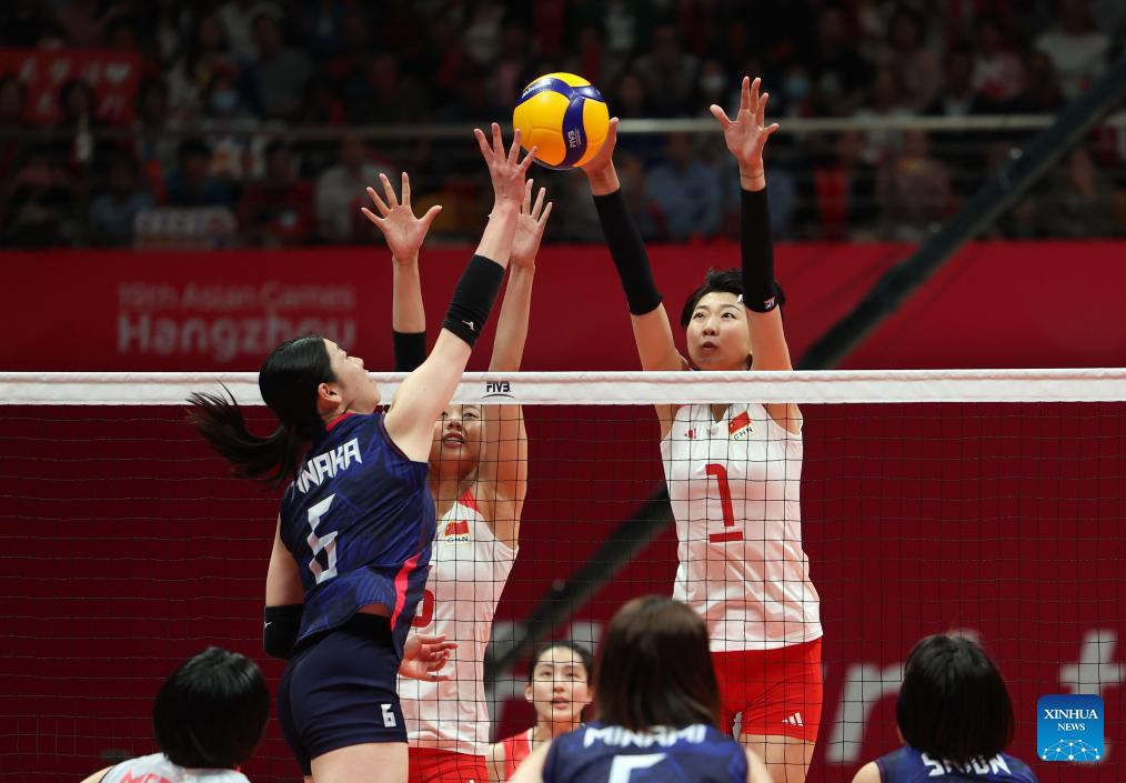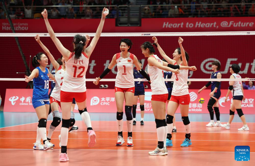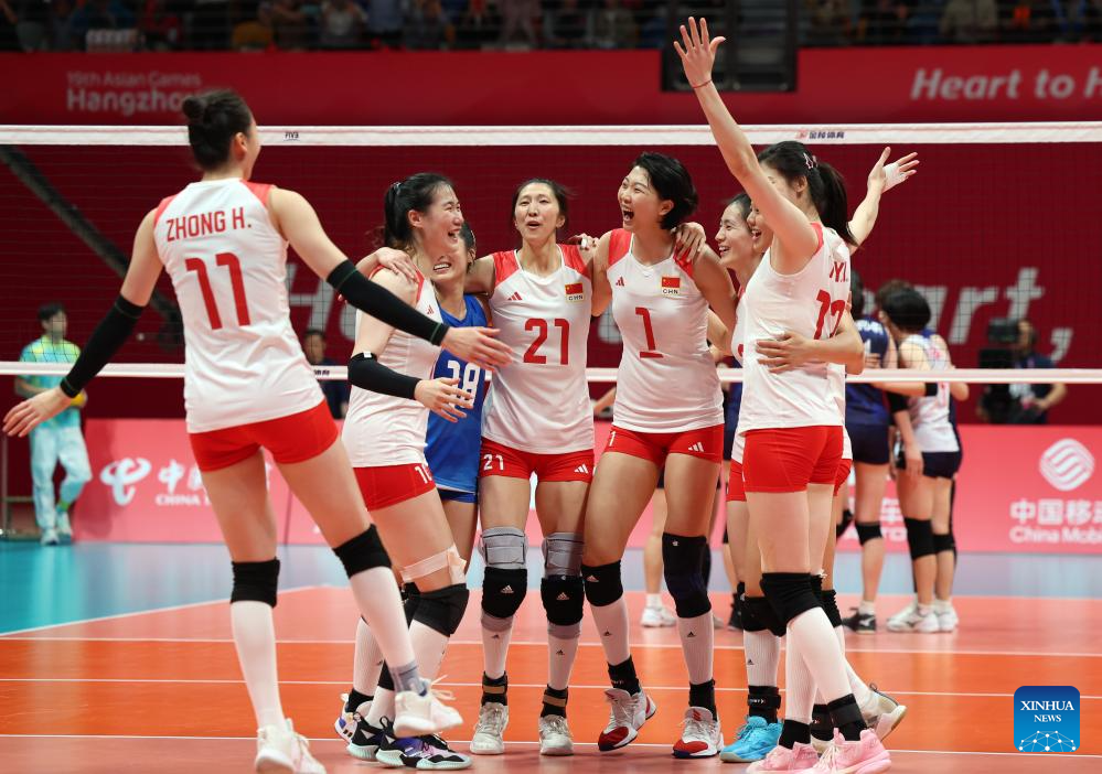 HANGZHOU, Oct. 7 (Xinhua) -- Defending champion China beat an under-strength Japan in straight sets at the Hangzhou Asian Games to retain its Asiad women's volleyball title here on Saturday evening.