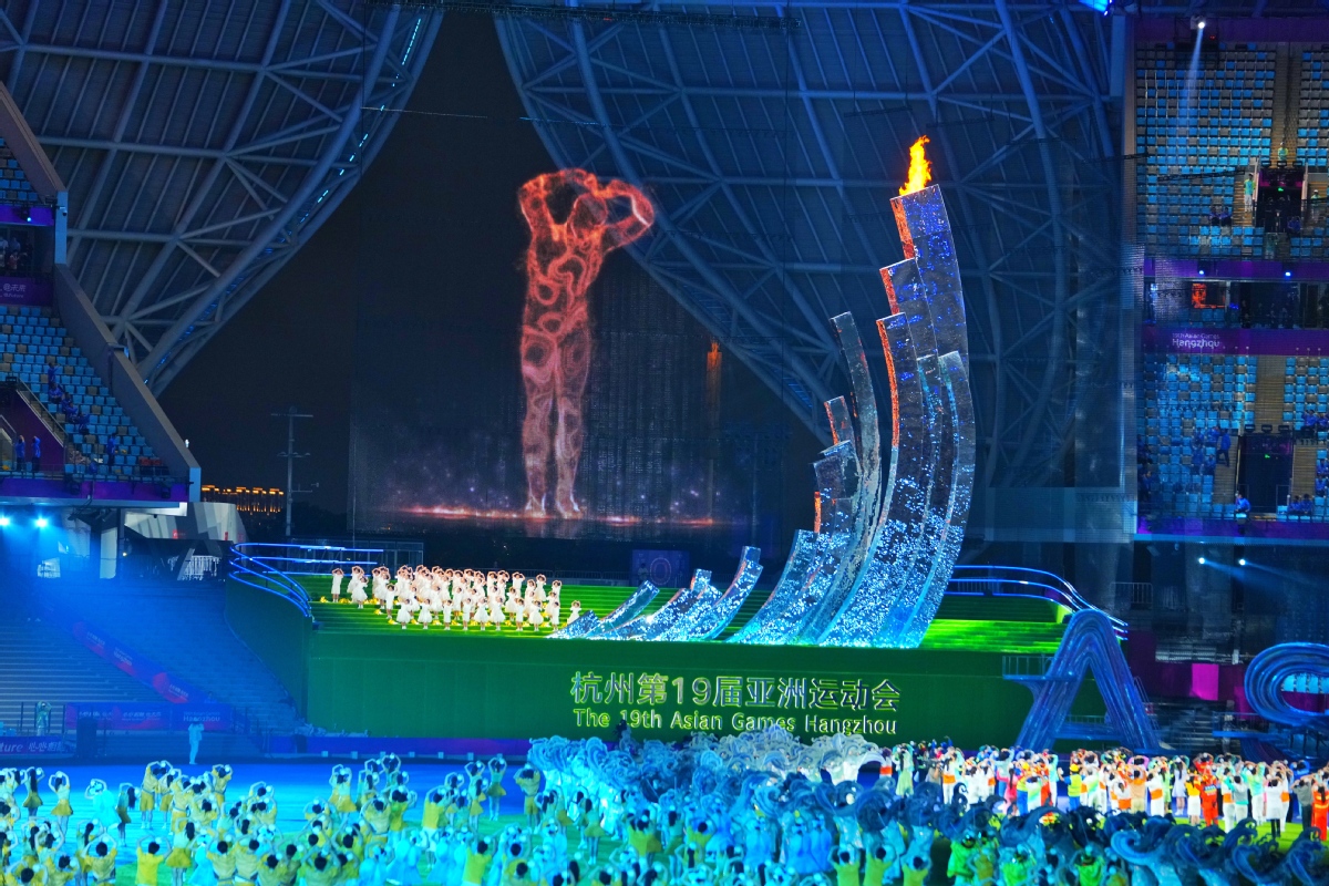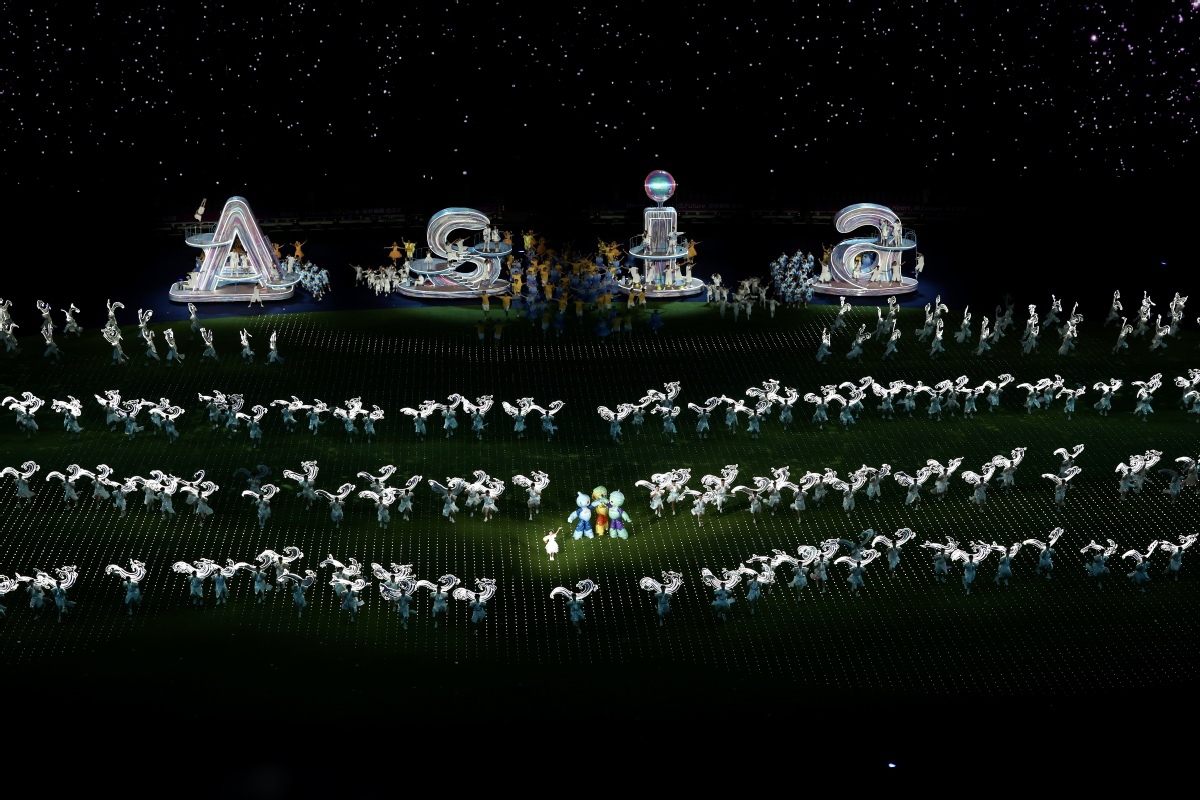 Following the extinguishing of the cauldron, the digital torchbearer stepped out and transformed into starlight filling up the night sky, passing on the flame of sports and the spirit of the Asian Games.