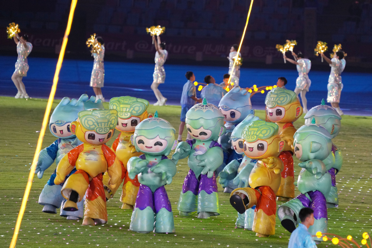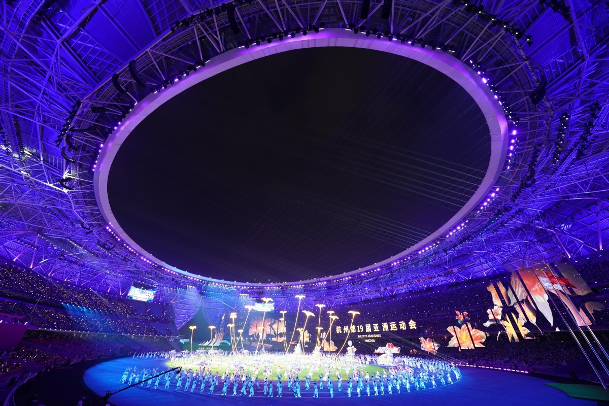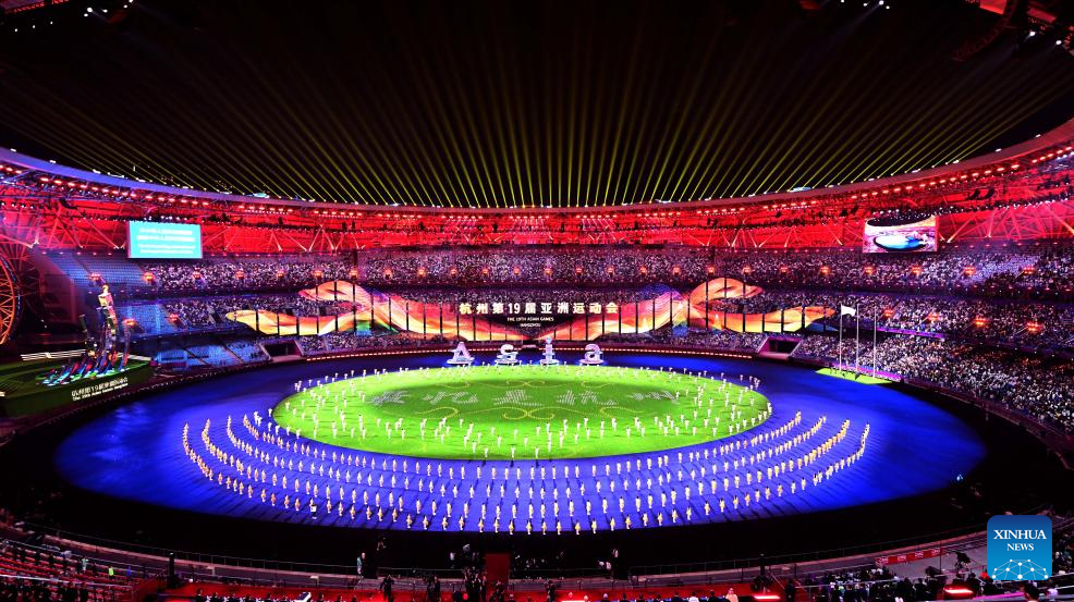 Artists perform during the closing ceremony of the 19th Asian Games at the Hangzhou Olympic Sports Center Stadium in Hangzhou, East China's Zhejiang province. [Photo/Xinhua]