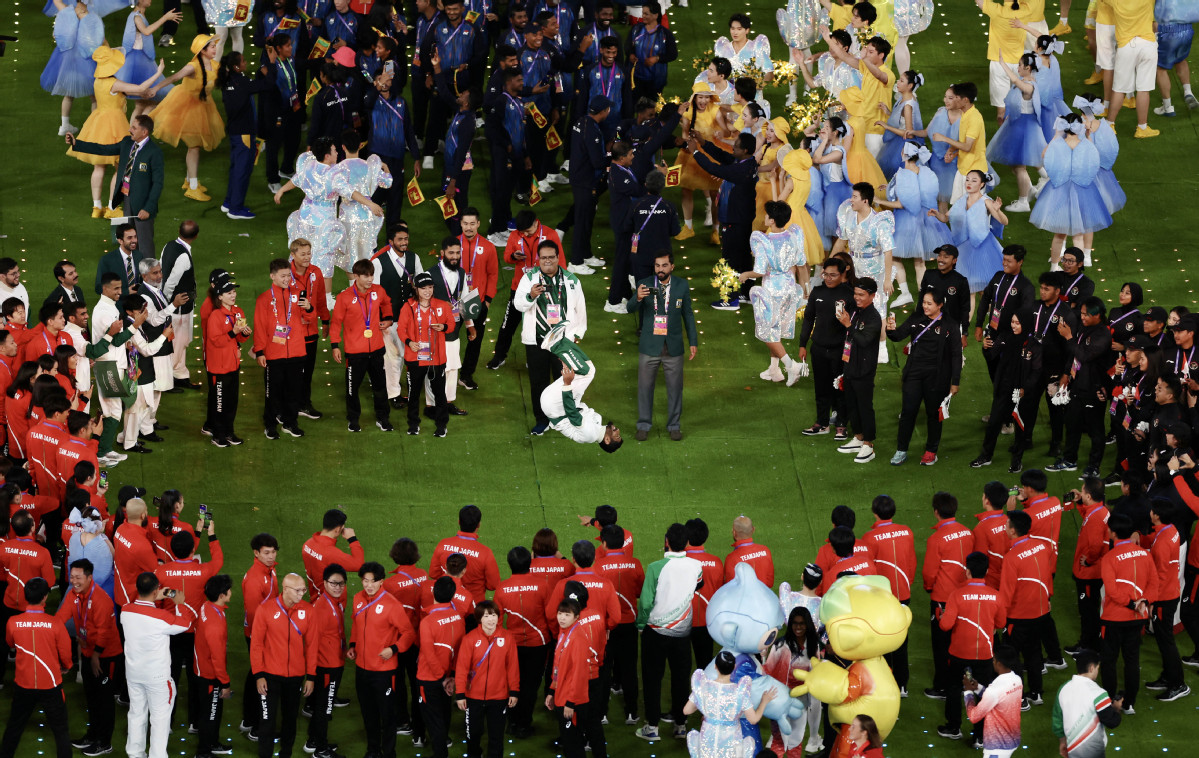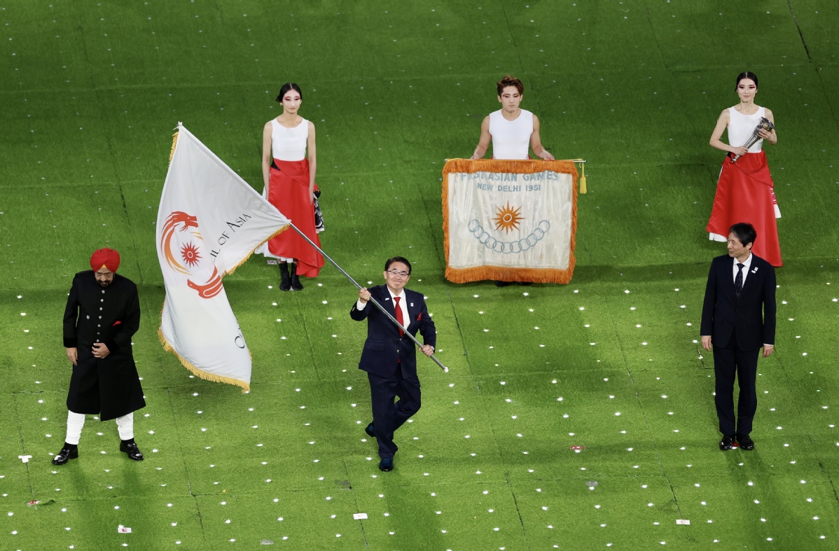 With the OCA flag lowered and the OCA anthem played, Hangzhou mayor Yao Gaoyuan handed the flag to Singh, who entrusted the flag to Hideaki Omura, governor of Aichi prefecture and Hideo Nakata, deputy mayor of Nagoya, the host city of the 2026 Asian Games.