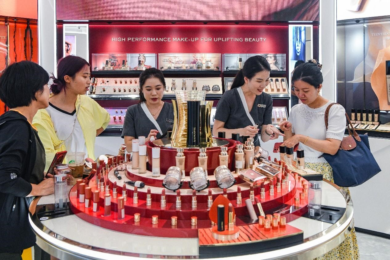 Consumers shop in a duty-free mall in Haikou, south China's Hainan province, Oct. 5, 2023. (People's Daily Online/Su Bikun)
