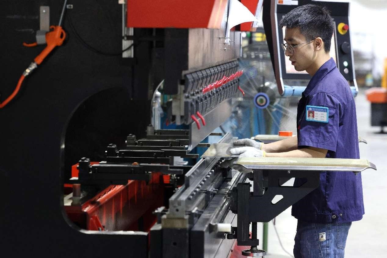 A man works in a workshop of a machinery manufacturing enterprise in Fuzhou, southeast China's Fujian province, Sept. 26, 2023. (People's Daily Online/Wang Wangwang)