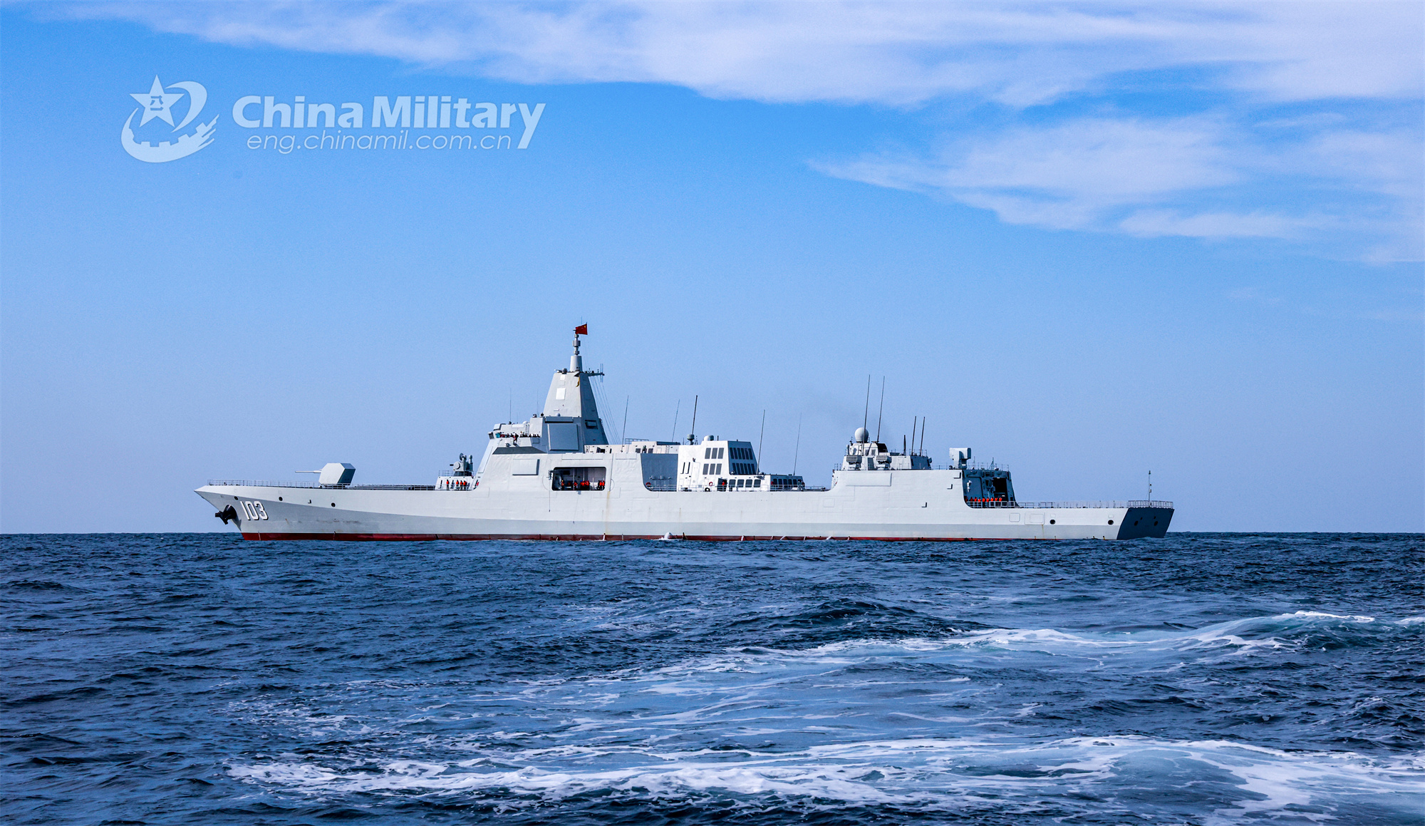 The guided-missile destroyer Changchun attached to a destroyer flotilla with the navy under the PLA Northern Theater Command steams to a designated sea area during a maritime training exercise on September 20, 2023. (eng.chinamil.com.cn/Photo by Wang Zezhou)