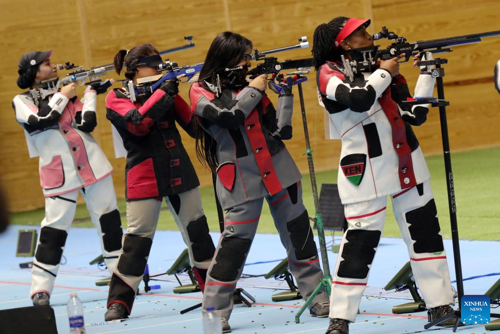 Mburu Priscilla of Kenya competes during the final of men's 50m rifle 3 positions during the African Shooting Championship in Cairo, Egypt, Oct. 8, 2023. (Xinhua/Ahmed Gomaa)
