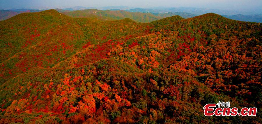 Renzu Mountain presents a breathtaking landscape as autumn leaves turn red in Ji County of Linfen, north China's Shanxi Province. (Photo: China News Service/Yan Pengfei)