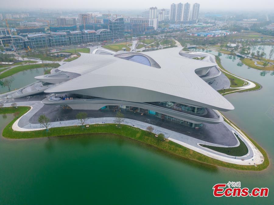 Drone photo shows Chengdu Science Fiction Museum, the main venue for the 2023 Chengdu Science Fiction Convention, in southwest China's Sichuan Province, Oct. 10, 2023. (Photo: China News Service/Zhang Lang)