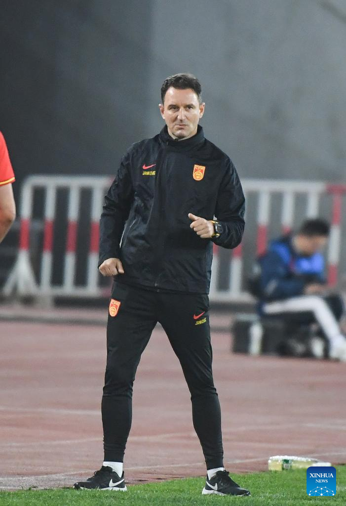 Aleksandar Jankovic, head coach of China, reacts during an international friendly football match between China and Vietnam in Dalian, northeast China's Liaoning Province, Oct. 10, 2023. (Xinhua/Long Lei)