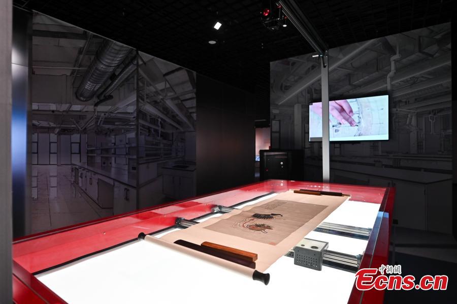 A high-tech instrument for ancient calligraphy and painting restoration is displayed at an exhibition featuring high-end technologies on future prospects of cultural relic conservation, in Chongqing, Oct. 10, 2023. (Photo: China News Service/He Penglei)
