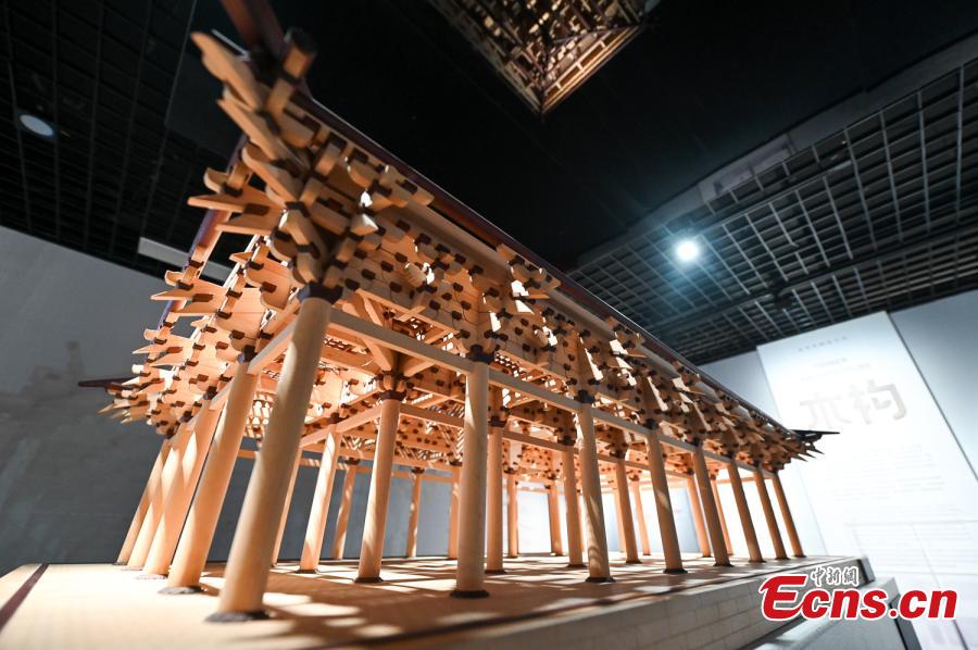 A model of the East Main hall of Foguang Temple in Shanxi Province is displayed in Chongqing, Oct. 10, 2023. (Photo: China News Service/He Penglei)