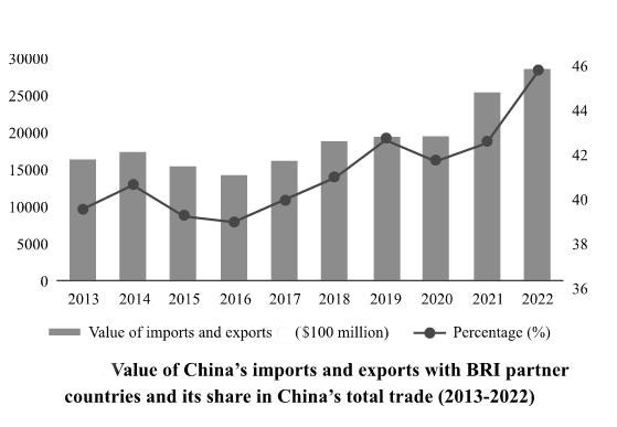 From 2013 to 2022, the cumulative value of imports and exports between China and BRI partner countries reached $19.1 trillion, with an average annual growth rate of 6.4 percent.