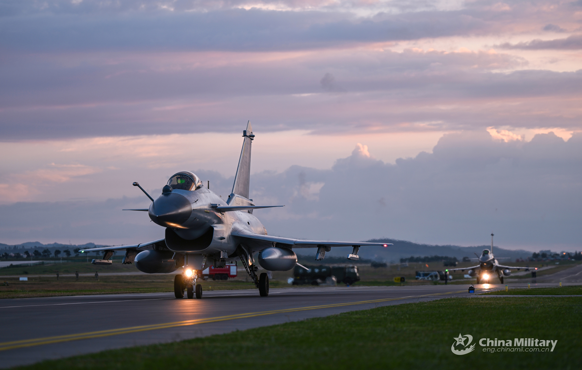 Fighter jets attached to an aviation brigade of the air force under the PLA Southern Theater Command taxi on the runway to get ready for a flight training exercise on September 19, 2023. (eng.chinamil.com.cn/Photo by Jin Hangyu)