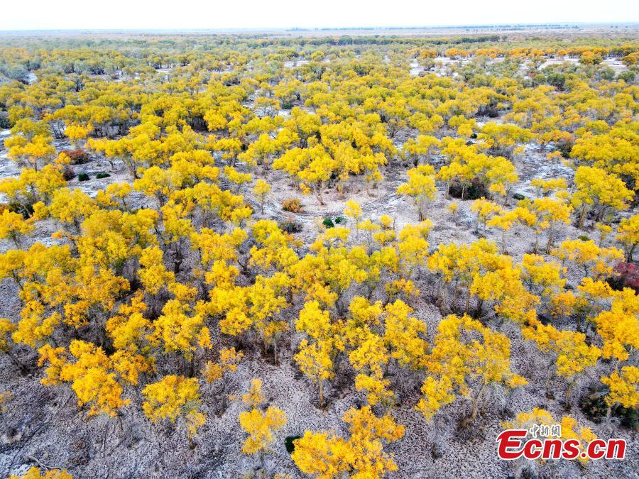 Autumn is the best season to visit the populus euphratica forest in Wensu County, Aksu Prefecture, Northwest China's Xinjiang Uyghur Autonomous Region as it becomes a sea of golden leaves. (Photo: China News Service/Zhao Xinchang)