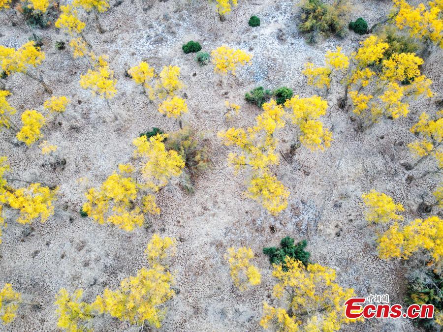 Autumn is the best season to visit the populus euphratica forest in Wensu County, Aksu Prefecture, Northwest China's Xinjiang Uyghur Autonomous Region as it becomes a sea of golden leaves. (Photo: China News Service/Zhao Xinchang)