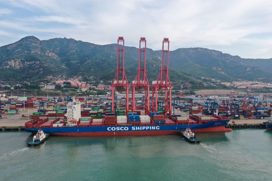 This aerial photo taken on May 9, 2023 shows a port in Lianyungang, east China's Jiangsu Province. In 2013, China proposed the idea of building an "economic belt along the Silk Road" in Kazakhstan, which, combined with the proposal of the 21st Century Maritime Silk Road, eventually became the Belt and Road Initiative (BRI). (Xinhua/Ji Chunpeng)