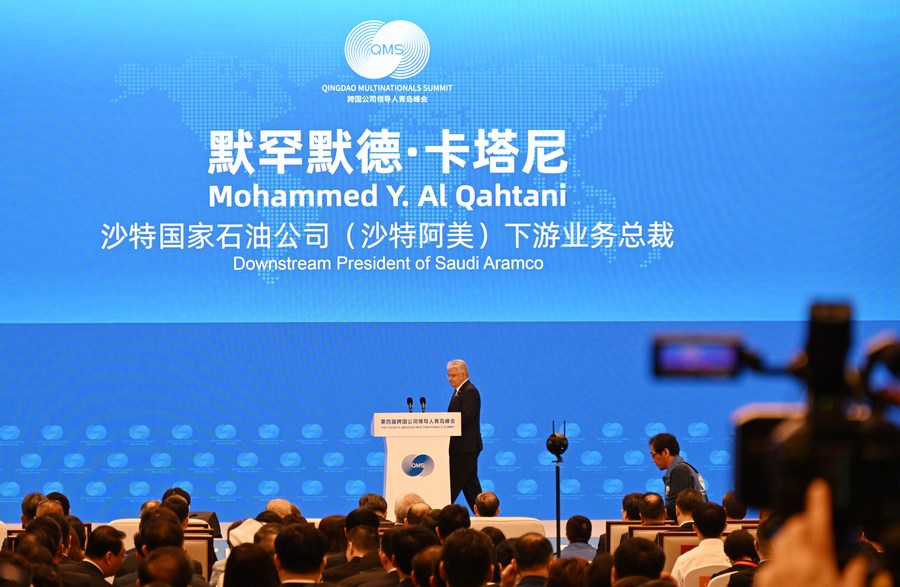 Downstream President of Saudi Aramco Mohammed Y. Al Qahtani speaks during the opening ceremony of fourth Qingdao Multinationals Summit in Qingdao, east China's Shandong Province, Oct. 11, 2023. (Xinhua/Li Ziheng)