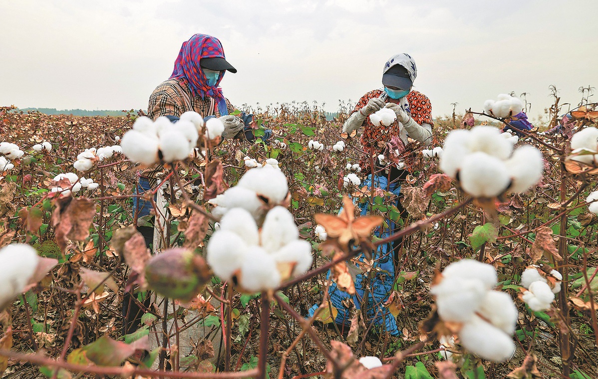 Photo taken on Oct 7, 2023, shows farmers harvesting cotton in a field in Tangshan, Hebei province, ahead of Cold Dew, one of the 24 solar terms in the traditional Chinese calendar, which fell on Oct 8. It marks a period of time when the temperature continues to drop as the autumn deepens, during which farmers in northern China harvest their summer crops and plant winter wheat. [Photo/Xinhua]