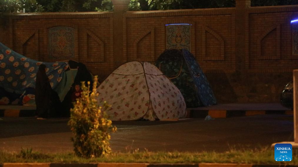 Tents set up by residents are pictured in an open area following earthquakes in Herat City, west Afghanistan's Herat Province, Oct. 12, 2023. Two earthquakes each with a magnitude of 6.2 on the Richter scale, followed by several aftershocks, rocked west Afghanistan with an epicenter in the Zanda Jan district of Herat province on Saturday, leaving at least 2,053 dead and thousands more injured. (Photo by Mashal/Xinhua)