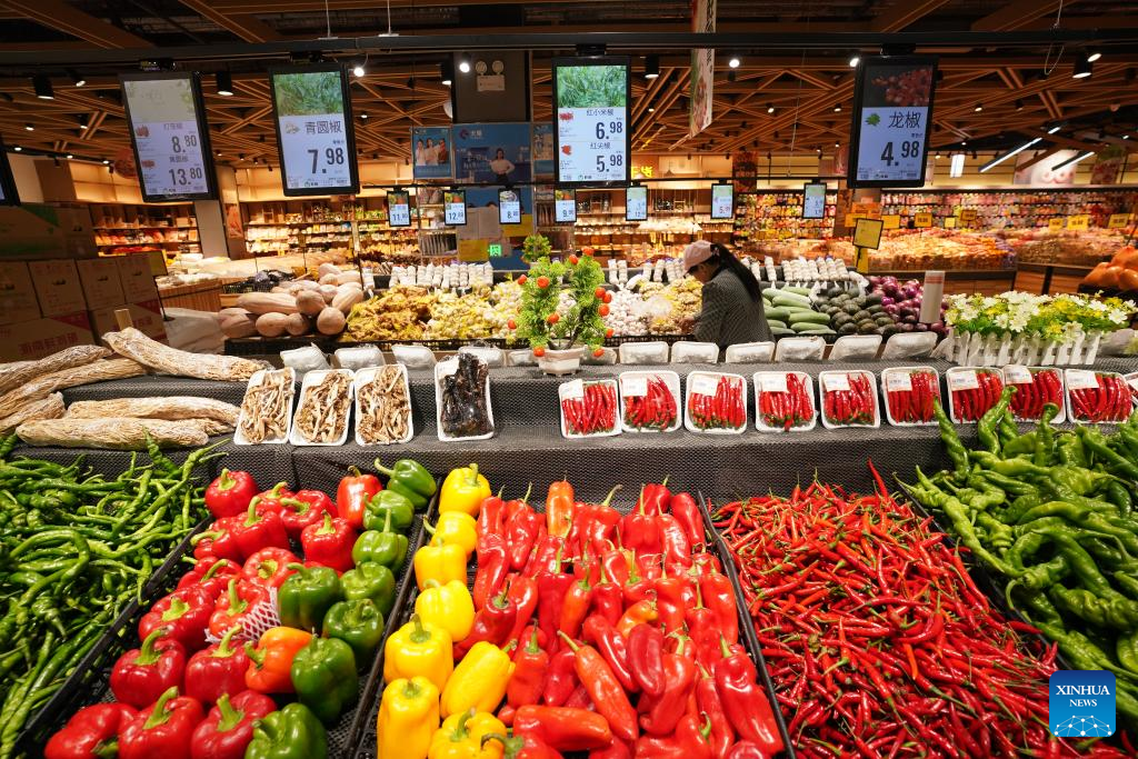 A customer shops for vegetables at a supermarket in Tongdao Dong Autonomous County of Huaihua City, central China's Hunan Province, Oct. 13, 2023.