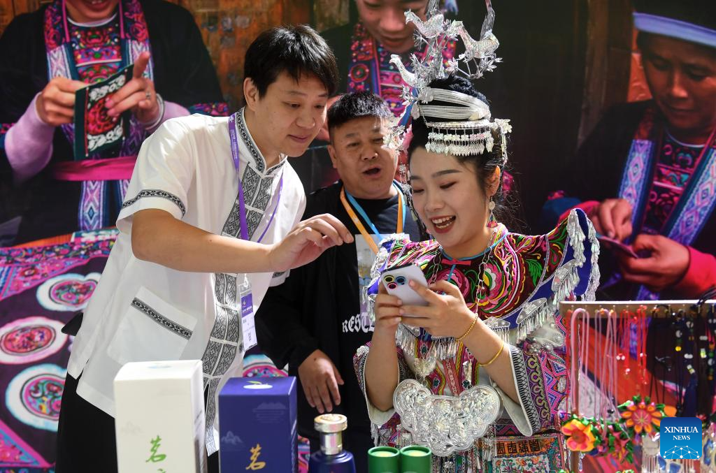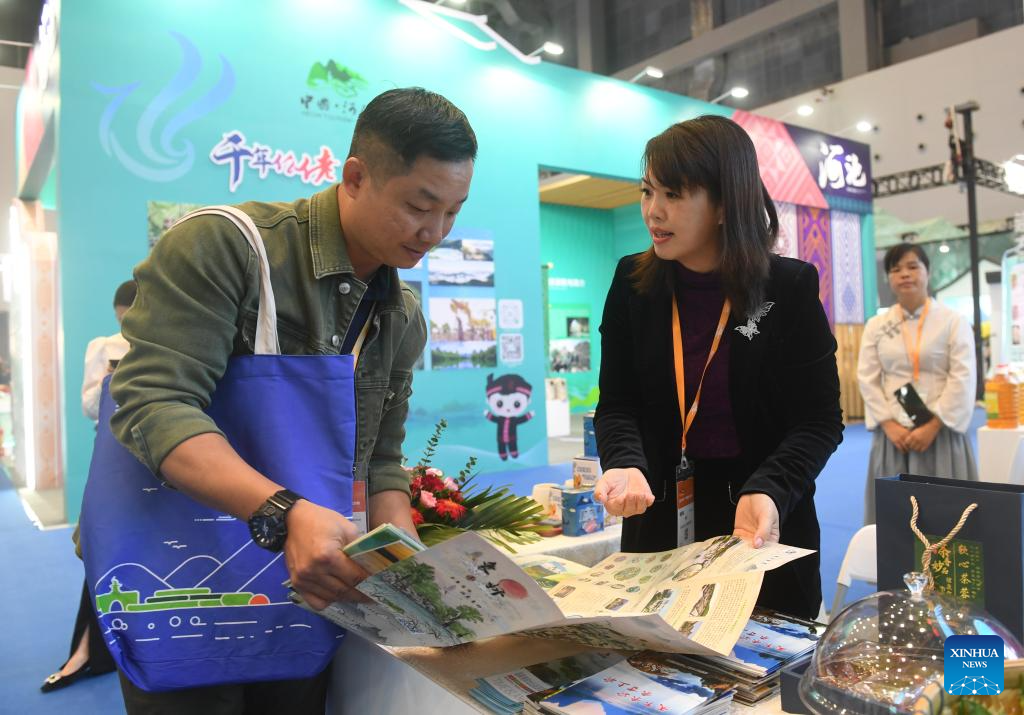 People visit the 2023 China-ASEAN Expo Tourism Exhibition in Guilin, south China's Guangxi Zhuang Autonomous Region, Oct. 13, 2023. (Xinhua/Lu Boan)