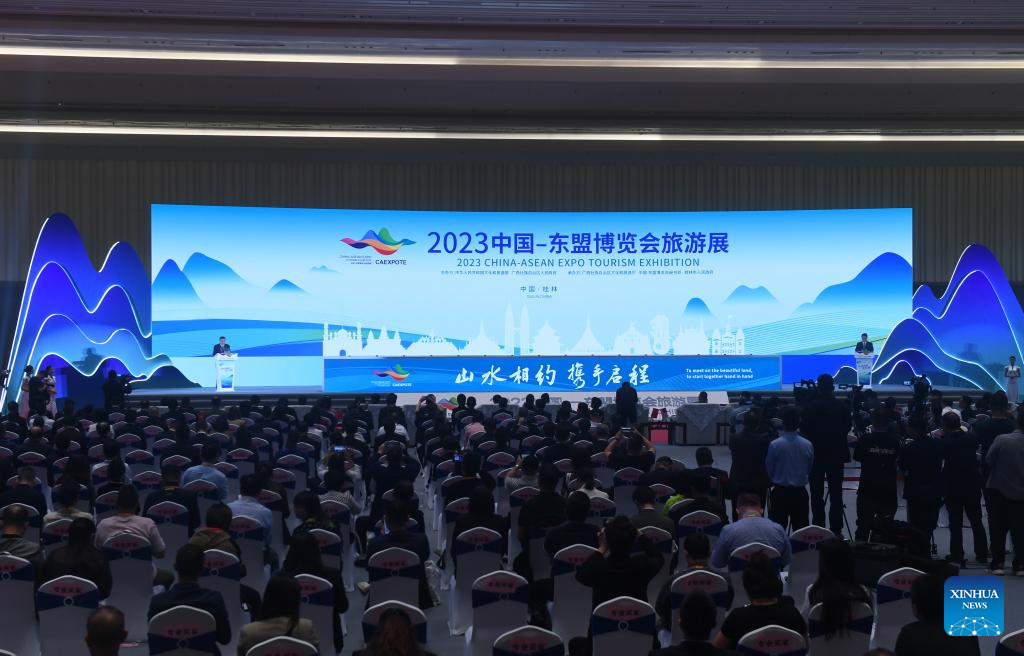 The opening ceremony of the 2023 China-ASEAN Expo Tourism Exhibition is held in Guilin, south China's Guangxi Zhuang Autonomous Region, Oct. 13, 2023. (Xinhua/Lu Boan)