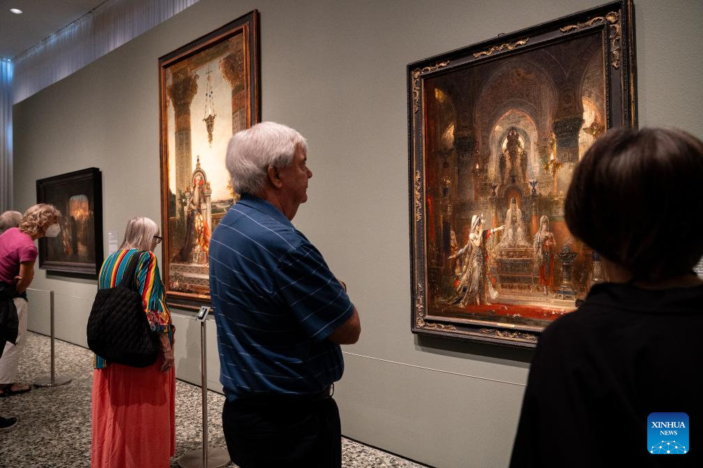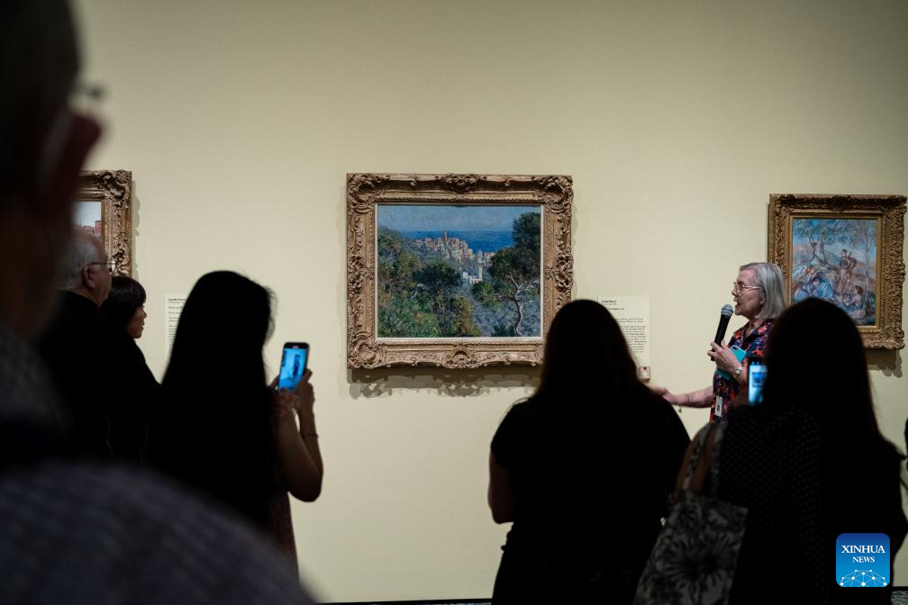 People view artworks at the preview of an exhibition titled From Rembrandt to Van Gogh: Masterpieces from the Armand Hammer Collection at the Museum of Fine Arts, Houston, Texas, the United States, on Oct. 13, 2023. The exhibition will run from Oct. 15, 2023 to Jan. 21, 2024. (Photo by Chen Chen/Xinhua)